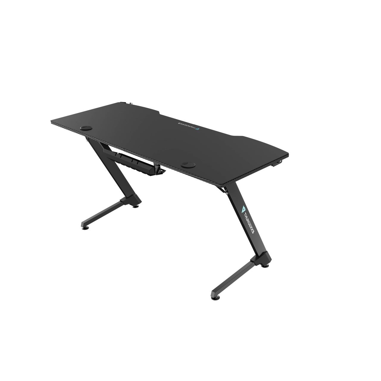 Birou gaming Thunder X3 ED5 negru, structura de otel, suprafata biroului este din imitatie de carbon, mousepad de 2mm pe intregimea suprafetei biroului, dimensiune suprafata birou: 140x60cm, inaltime blat: 75cm, tava pentru organizarea cablurilor sub blat, suport pentru casti, suport pentru pahar, gauri pentru organizarea cablurilor, greutate maxima admisa: 50 kg, greutate: 19 kg