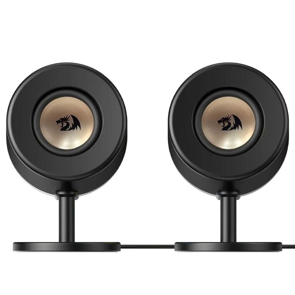 Boxe Bluetooth Redragon Ahri negre iluminare RGB, iluminare RGB a difuzoarelor, design tip Bullet cu picior, putere: 6W RMS (3W x 2), dimensiune difuzor: 2.25", frecventa: 100Hz~20KHz,  ≥75db, telecomanda pe fir cu control volum/mod/iluminare, intrare AUX si iesire casti, conexiuni: ouput: 1x USB, input: 2x jack 3.5mm TRS, Bluetooth, dimensiuni: 138x101x90mm, greutate: 911g