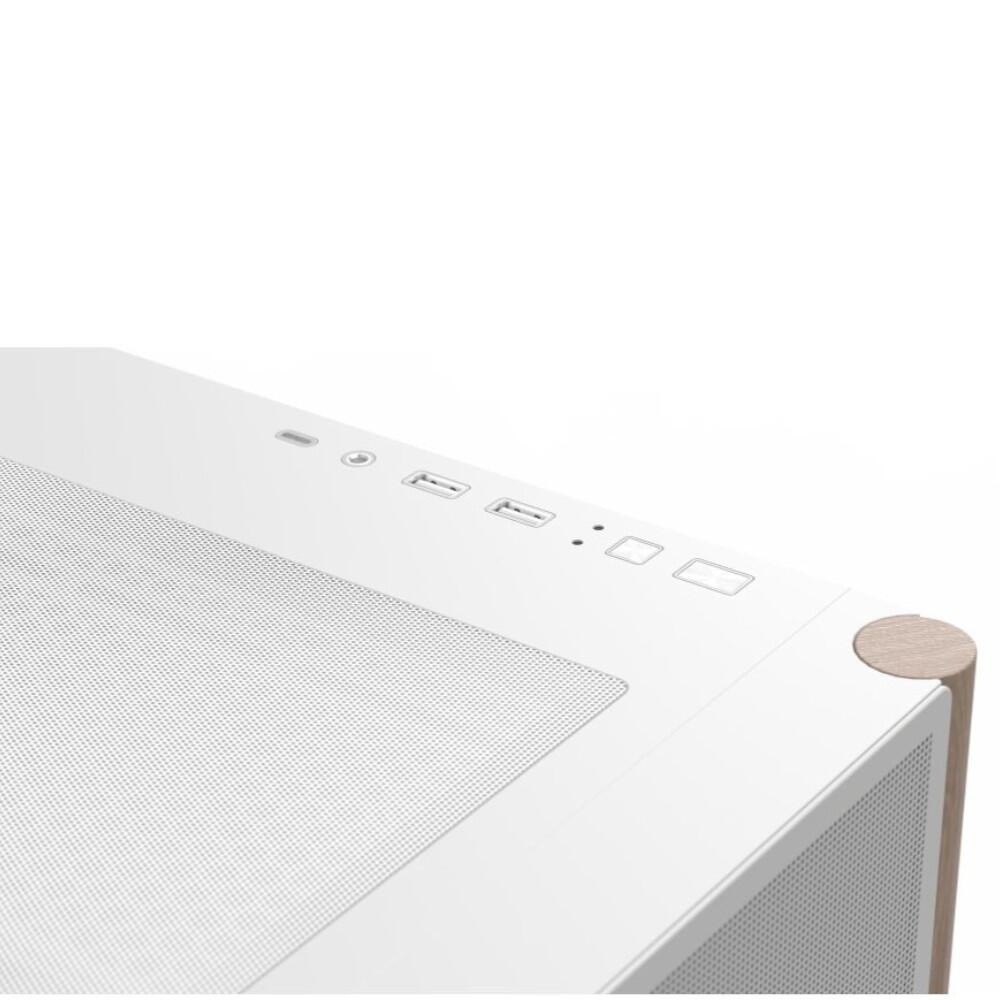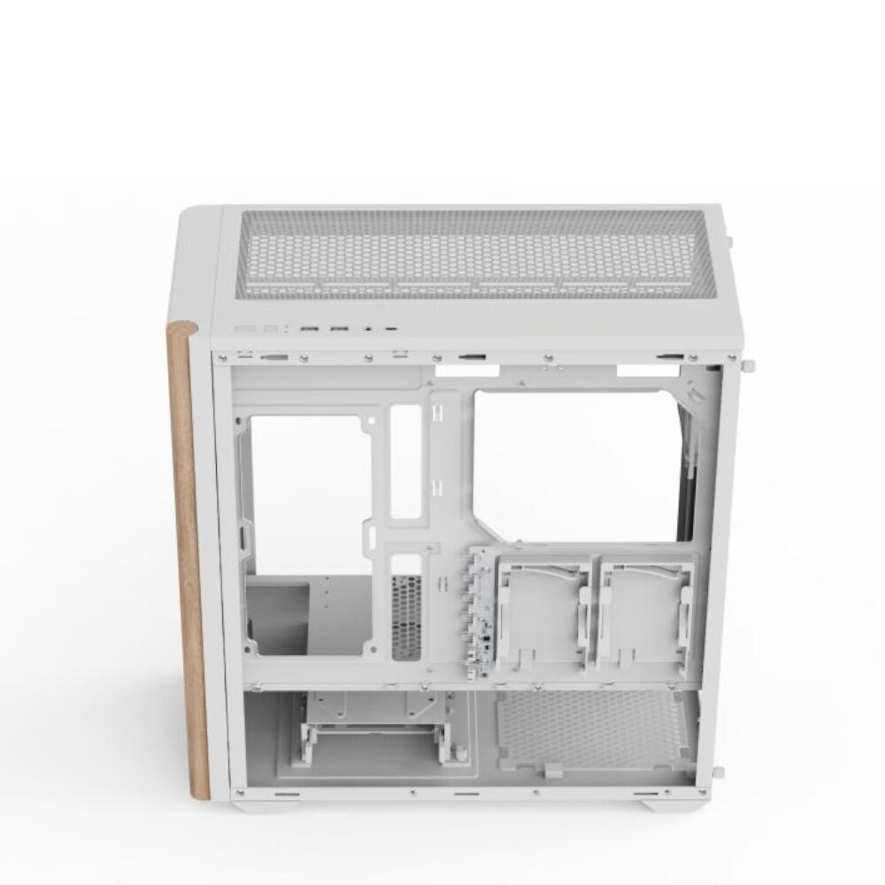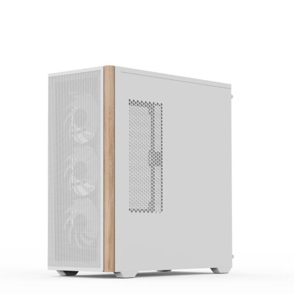 Carcasa Aerocool D501A V2 alba, ABS + SPCC Steel + Wood ATX Mid Tower, fara sursa (tip ATX, montata jos), interior vopsit alb, 2x 2.5”/3.5” (intern), 2x 2.5” (intern), fata – 3x 120mm aRGB LED fans (inclus), spate – 1x 120mm aRGB LED fan (inclus), tavan – 3x 120mm / 2x 140mm fan (optional), podea – 2x 120mm fans (optional), lateral – 2x 120mm fans (optional), 1x USB Type-C, 2x USB 3.0, HD Audio, ATX / microATX / mini-ITX, sloturi expansiune: x7, design premium cu panou frontal din mesh metalic si insertie de lemn si panou lateral din sticla securizata, include HUB aRGB pentru maxim 5 ventilatorare, inaltime maxima cooler procesor: 171mm, lungime maxima placa video: 400mm (fara radiator in montat in partea frontala), suport radiator water cooling: fata – 1x 120/140/240/280/360mm, spate – 1x 120mm, tavan – 1x 120/140/240/280/360mm (140/280mm Radiator: 30mm max motherboard component height), spatiu pentru cable management de 19.6mm adancime, dimensiuni (WxHxD): 213×476.5×458.6mm