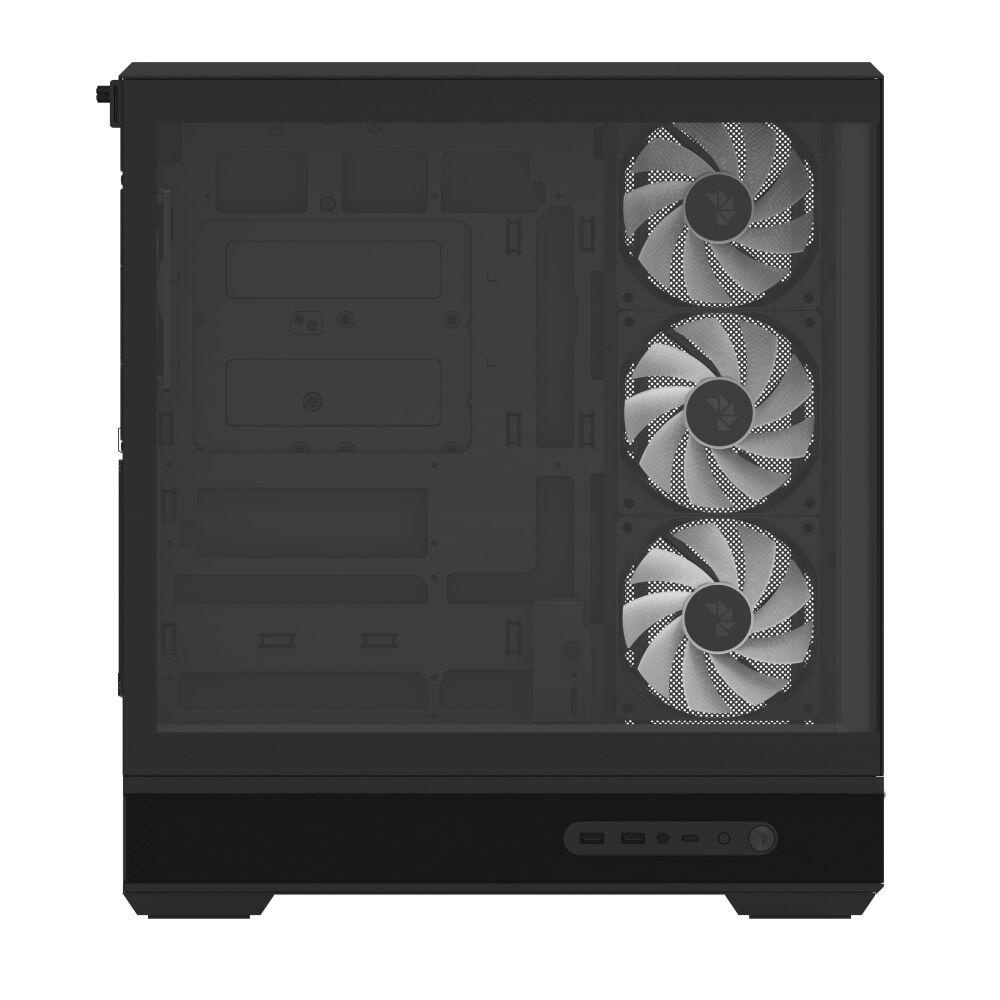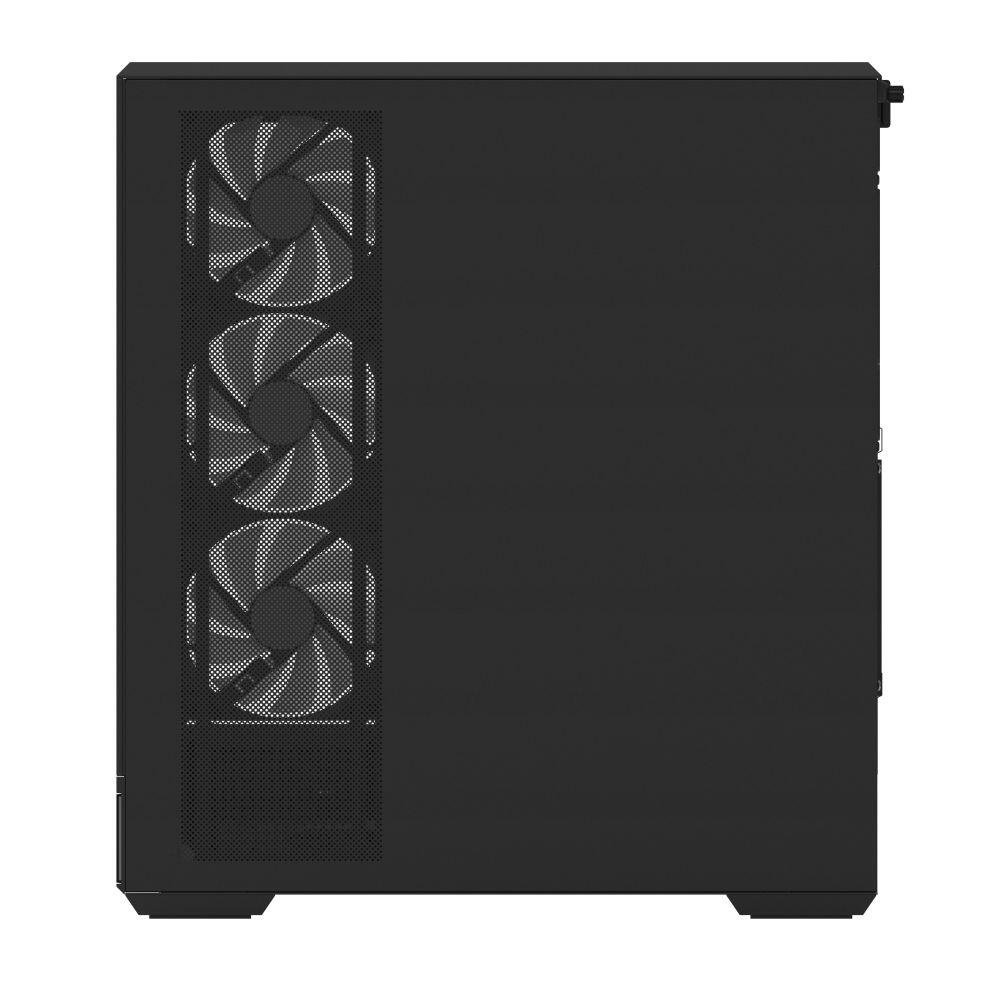 Carcasa Aerocool P500B Digi V1 neagra, SPCC Steel ATX + Tempered Glass Mid Tower, fara sursa (tip ATX, montata jos), interior vopsit negru, 2x 3.5” (2 x 3.5” / 1 x 2.5″ or 1 x 3.5” / 2 x 2.5 I ntern), 3x 2.5” (3 x 2.5” or 2 x 3.5” / 1 x 2.5″ or 1 x 3.5” / 2 x 2.5″ intern), lateral – 3x 120mm ARGB LED reversed fans (inclus), spate – 1x 120mm ARGB LED fan (inclus), tavan – 3x 120mm / 2x 140mm fan (optional), podea – 3x 120mm fans (optional), display pentru afisarea temperaturii sau a sarcinii procesorului, memoriilor si a placii video sau a orei, 1x USB 3.2 Gen 2×2 Type-C, 2x USB 3.2 Gen 1, HD Audio, ATX / microATX / mini-ITX, sloturi expansiune: x7, inaltime maxima cooler procesor: 170mm, lungime maxima placa video: 425mm (fara radiator montat in partea frontala), suport radiator water cooling: tavan – 1x 120/140/240/280/360mm, lateral – 1x 120/240/360mm, dimensiuni (WxHxD): 460x235x500mm