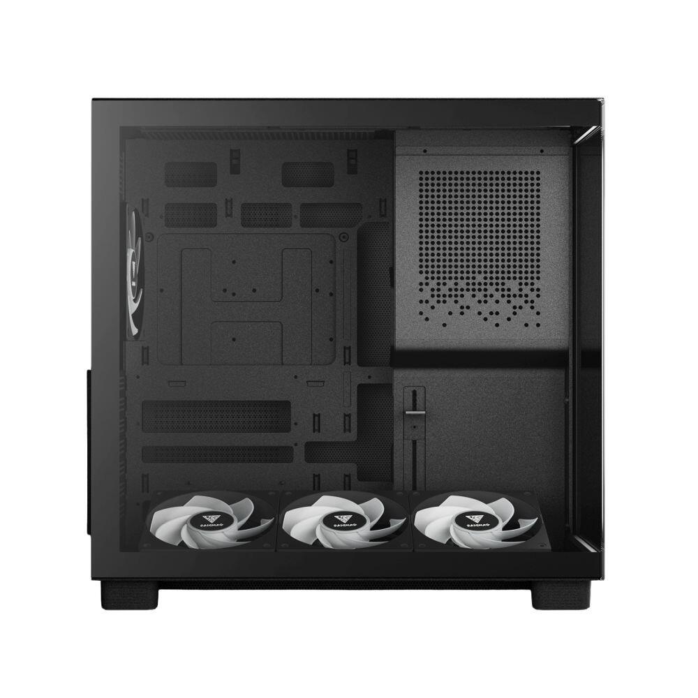 Carcasa Gamdias Atlas M4 neagra, SPCC & ABS & Tempered glass, Mid Tower Case, design dual chamber, interior vopsit negru, 1x 3.5” si 1x 2.5” (intern) sau 2x 2.5” (intern), spate – 1x 120mm aRGB LED Fans (inclus), tavan – 3x 120mm fans (optional), podea – 3x 120mm aRGB LED Fans (inclus), 2x USB 3.0, 1x USB Type-C, HD Audio, ATX/Micro-ATX/Mini-ITX, sloturi expansiune: x7, design premium panoramic din sticla securizataHUB aRGB cu 8 port-uri (4 sunt ocupate de ventilatoare existente pe carcasa), inaltime maxima cooler procesor: 175mm, lungime maxima placa video: 425mm, lungime maxima sursa: 160mm, suport radiatoare water cooling: spate – radiator 120mm, tavan – radiator 360mm, dimensiuni (LxWxH): 430x235x434mm