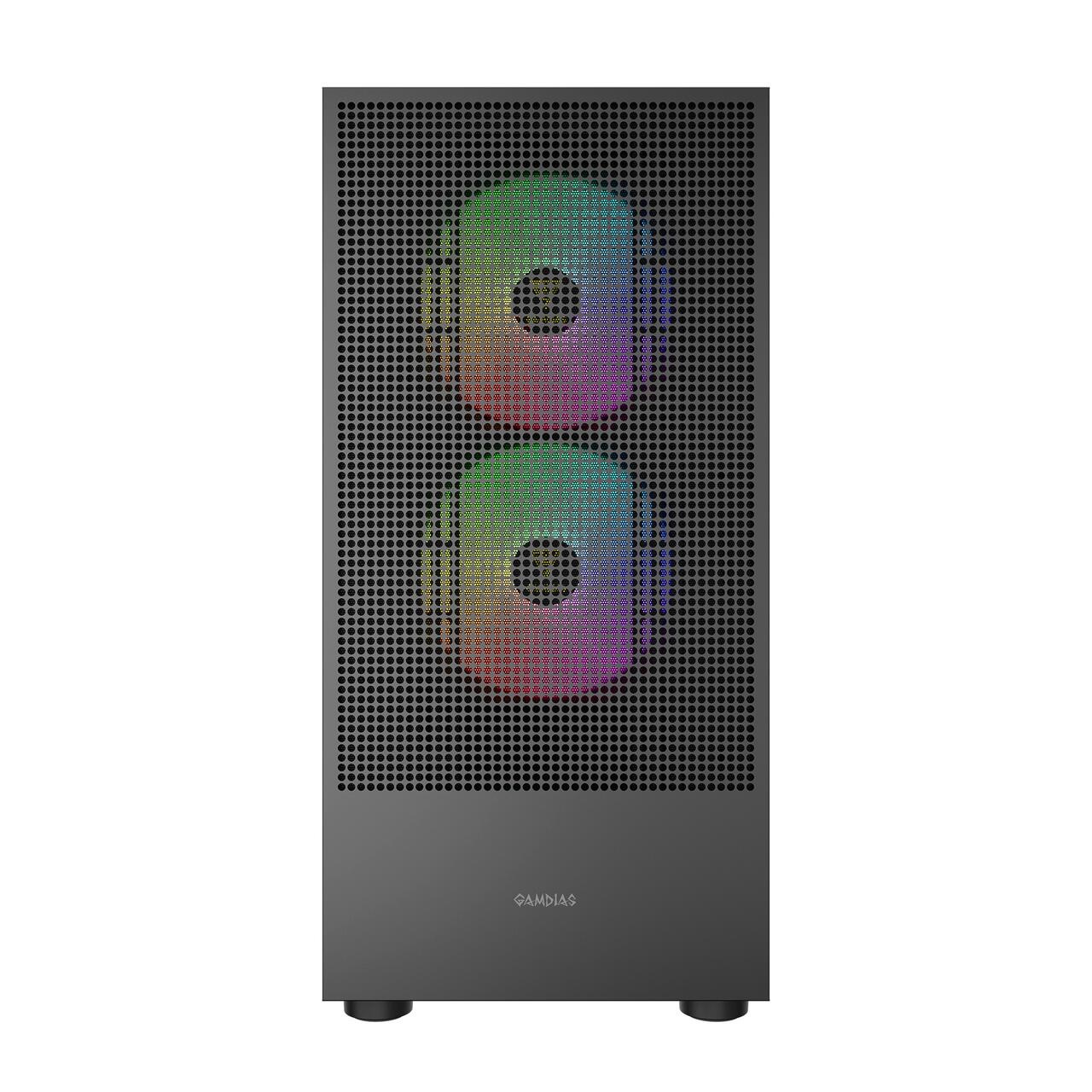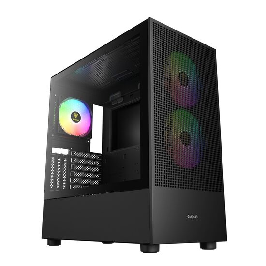 Carcasa Gamdias Talos M3 Mesh neagra, SPCC & ABS & Tempered glass, ATX Mid Tower Case, interior vopsit negru, 2×3.5” sau 1×2.5” si 1×3.5” (intern) / 3x 2.5” (intern), fata – 2x 140mm aRGB LED fans (inclus) / 3x 120mm (optional), spate – 1x 120mm aRGB LED fans (inclus), tavan – 3x 120mm / 2x 140mm fans (optional), 1x USB 3.0, 1x USB Type-C, HD Audio, E-ATX/ATX/Micro-ATX/Mini-ITX, sloturi expansiune: x7+3, design premium cu panou lateral din sticla securizata si panou frontal tip fagure cu gauri de 5mm, sincronizare RGB 5V (3pin) compatibila cu anumite placi de baza ASUS / MSI /ASROCK / GIGABYTE, HUB aRGB cu 6 port-uri (3 sunt ocupate de ventilatoare existente pe carcasa), inaltime maxima cooler procesor: 180mm, lungime maxima placa video: 390mm, suport radiatoare water cooling: fata – 280/360(fara cusca HDD)mm, tavan – 1x 280/360mm, spate – radiator 120mm, dimensiuni (LxWxH): 440x230x480mm, greutate: 7.6kg