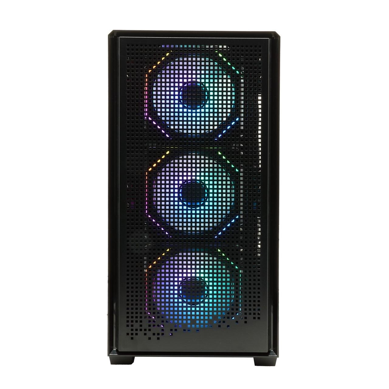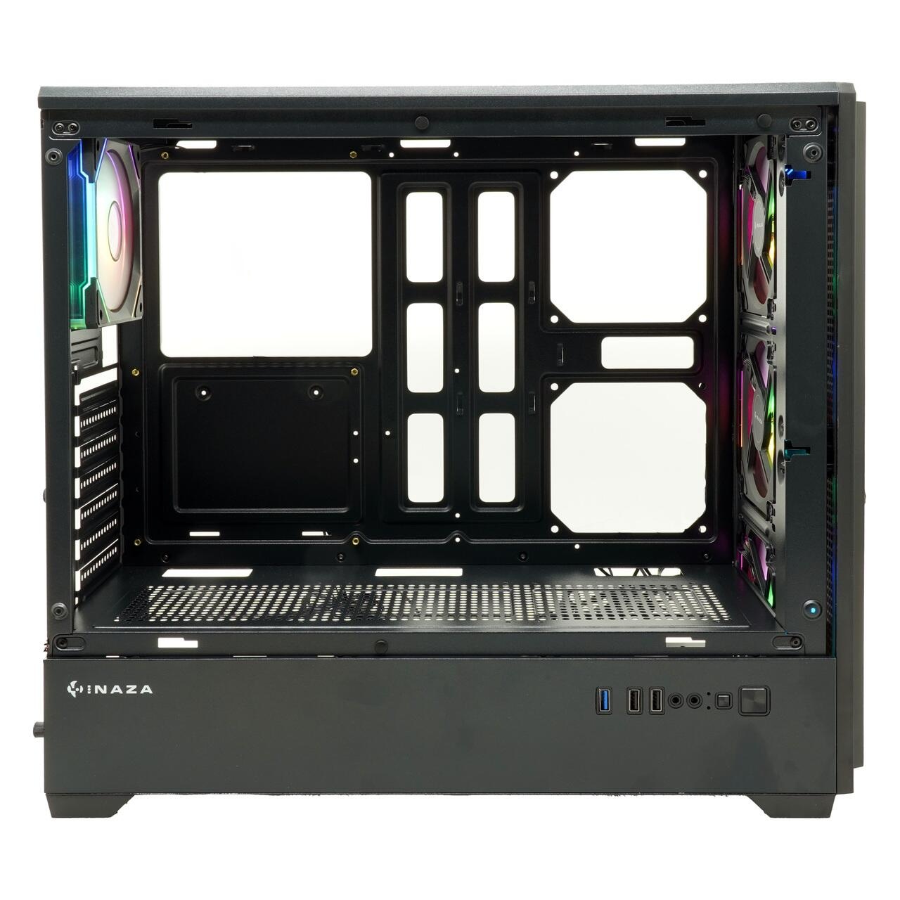 Carcasa Inaza Aether neagra, SECC Steel ATX Mid Tower, fara sursa (tip ATX, montata jos), interior vopsit negru, 3×3.5” (intern), 3×2.5” (intern), design tool-less, fata – 3x 120mm aRGB LED fans (inclus), spate – 1x 120mm aRGB LED fan (inclus), podea – 3x 120mm fans (optional), lateral dreapta – 2x 120mm fans (optional), design premium cu panou lateral din sticla securizata si frontal perforat, controller aRGB iluminat ce permite conectarea a maxim 8 ventilatoare, diverse efecte de iluminare, 1x USB 3.0, 2x USB 2.0, HD Audio, ATX / microATX / Mini-ITX, sloturi expansiune: x7, inaltime maxima cooler procesor: 170mm, lungime maxima placa video: 430mm, suport radiatoare water cooling: tavan – 1x 240/360mm, podea – 1x 240/360mm, dimensiuni (HxWxD): 475x220x445mm