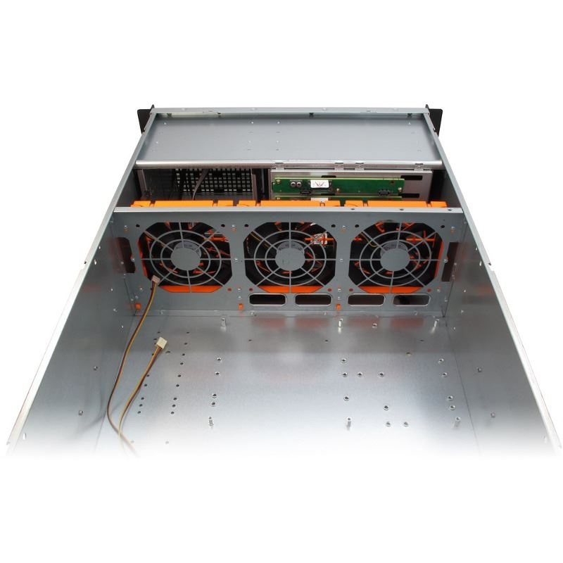 Inter-Tech IPC 4U-4410 19” storage case, carcasa server 4U pentru rack, fara sursa (tip ATX, server 4U redundant cu adaptor, server 3U redundant cu adaptor sau server 2U cu adaptor), 3×5.25” (extern), 10×2.5”/3.5” hot swap (extern), 1×3.5” (intern), 4×2.5” (intern), bara centru – 3x 120mm fans (inclus), fata – 2x 40mm fans (optional), spate – 2x 80mm fans (inclus), material: otel 1.0-1.2mm, 1x USB 3.0, 1x USB 2.0, dimensiuni (h/w/d): 178 x 482 x 690mm, compatibilitate placi de baza: eATX, ATX, microATX, Mini-ITX, SSI EEB (dimensiuni maxime: 305 x 345mm)