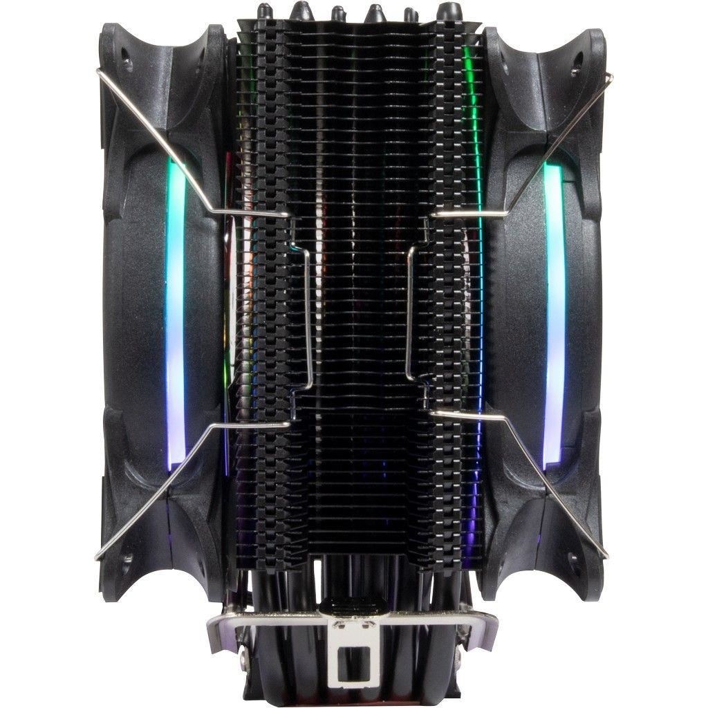 Cooler procesor Inter-Tech Argus SU-280, 6 heatpipe-uri direct touch de 6mm, putere de racire de pana la 180W TDP, 2x 120mm RGB LED fan (600-1200 RPM, 59.47 m³/h, max. 26 dBA, PWM), compatibil Intel LGA: 115x/1200/1366 / AMD: FM1/FM2/AM2/AM2+/AM3/AM3+/AM4, conectori: 4pin PWM si 3pin RGB, compatibil cu  ASUS AURA Sync / Gigabyte RGB Fusion 2.0 / MSI Mystic Light Sync / ASRock Polychrome, dimensiuni: 160x130x100mm, greutate: 830g