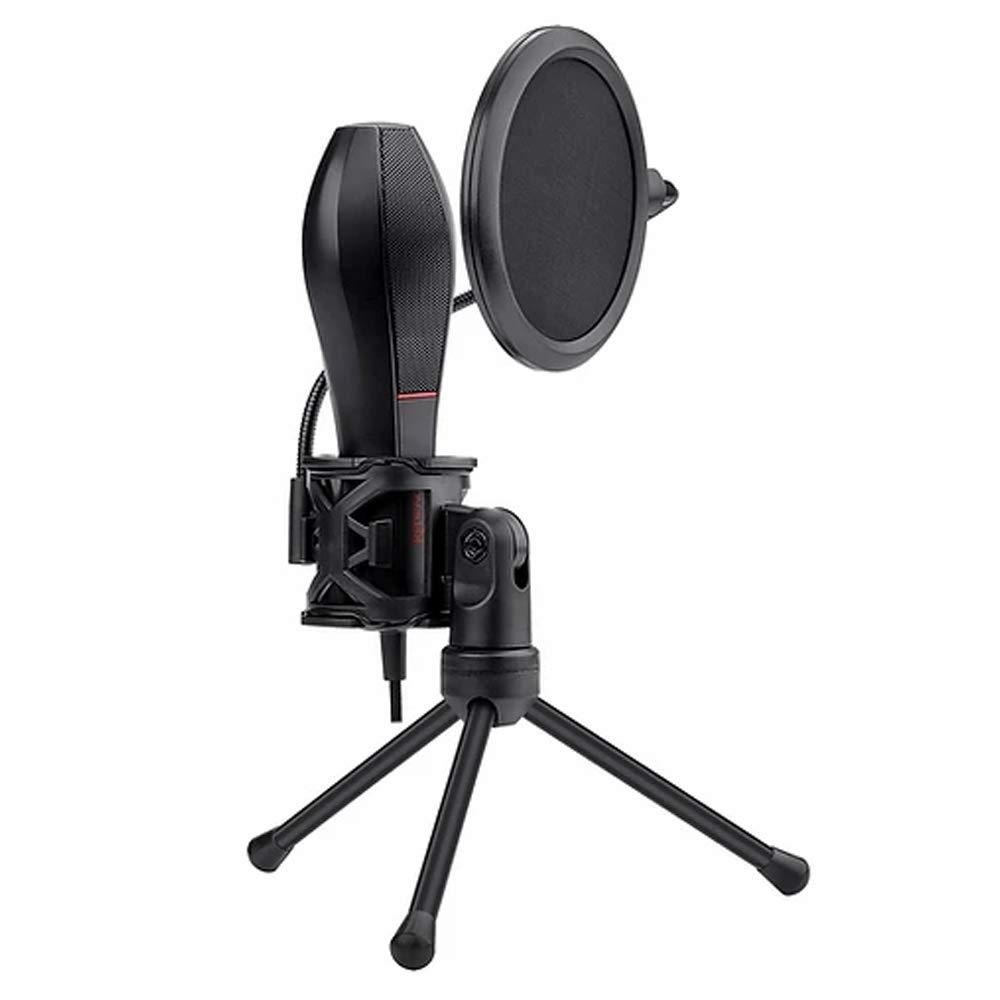 Microfon Redragon Quasar negru cu stand, microfon omni-condenser Omni-9765 (sensibilitate: -38±3dB, raspuns in frecventa: -50Hz-16kHz, impedanta: ≤2.2KΩ), include stativ si filtru, lungime cablu: 1.5m, conectori: 1x USB, dimensiuni: 150x55x33mm, greutate: 250g