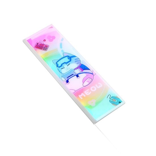 Panoul Segotep Meow aRGB are un design modern si elegant, destinat sa completeze estetic orice carcasa de PC. Cu dimensiunile de 290x88x6mm, acest panou se integreaza perfect in carcasele compatibile Memphis-S si Memphis-S Meow, adaugand un element de iluminare atragator fara a ocupa prea mult spatiu. Grosimea de doar 6mm il face discret, dar in acelasi timp, suficient de vizibil pentru a crea efecte luminoase spectaculoase.