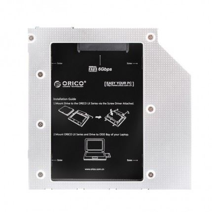 Orico LX Series L95SS V1 PRO Laptop Hard Drive Mount, adaptor pentru montarea unui HDD/SSD SATA I/II/II de 2.5” in locul unitatii optice din multe laptop-uri/notebook-uri, capacitate maxima: 2TB, compatibil cu HDD 2.5” SATA cu grosimea intre 7mm si 9.5mm, conectori: SATA/Slimline SATA, viteza de transfer: SATA 3.0 (6Gbit/s / 600MB/s), grosime: 10mm, produsul nu este compatibil cu laptop-urile ce folosesc unitati optice mai subtiri de 10mm