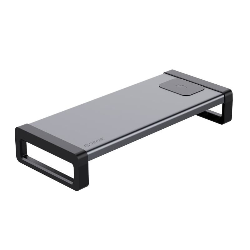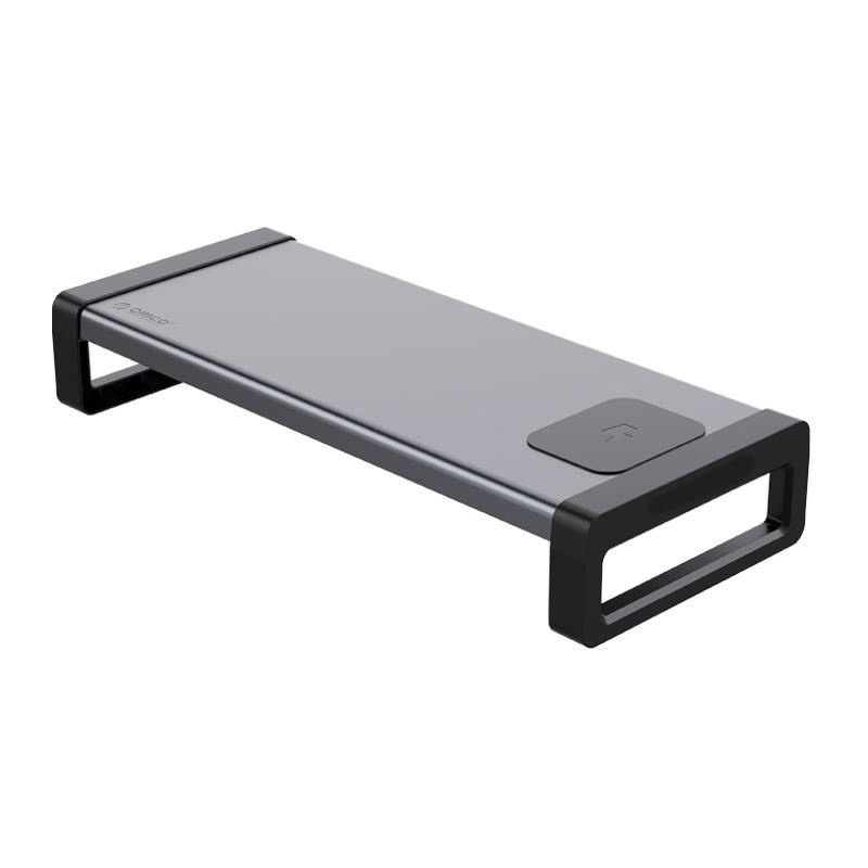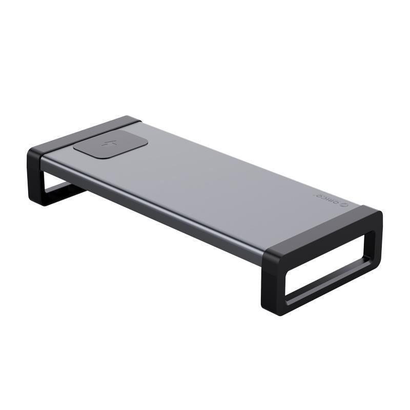 Stand monitor Orico HSQ-02W gri, structura din aluminiu si ABS, incarcator wireless integrat, putere iesire: 5V1A, 9V1.1A, 12V1.2A MAX 15W, putere intrare: 12V2A, dimensiuni: 530x221x91mm, greutate: 1.38kg