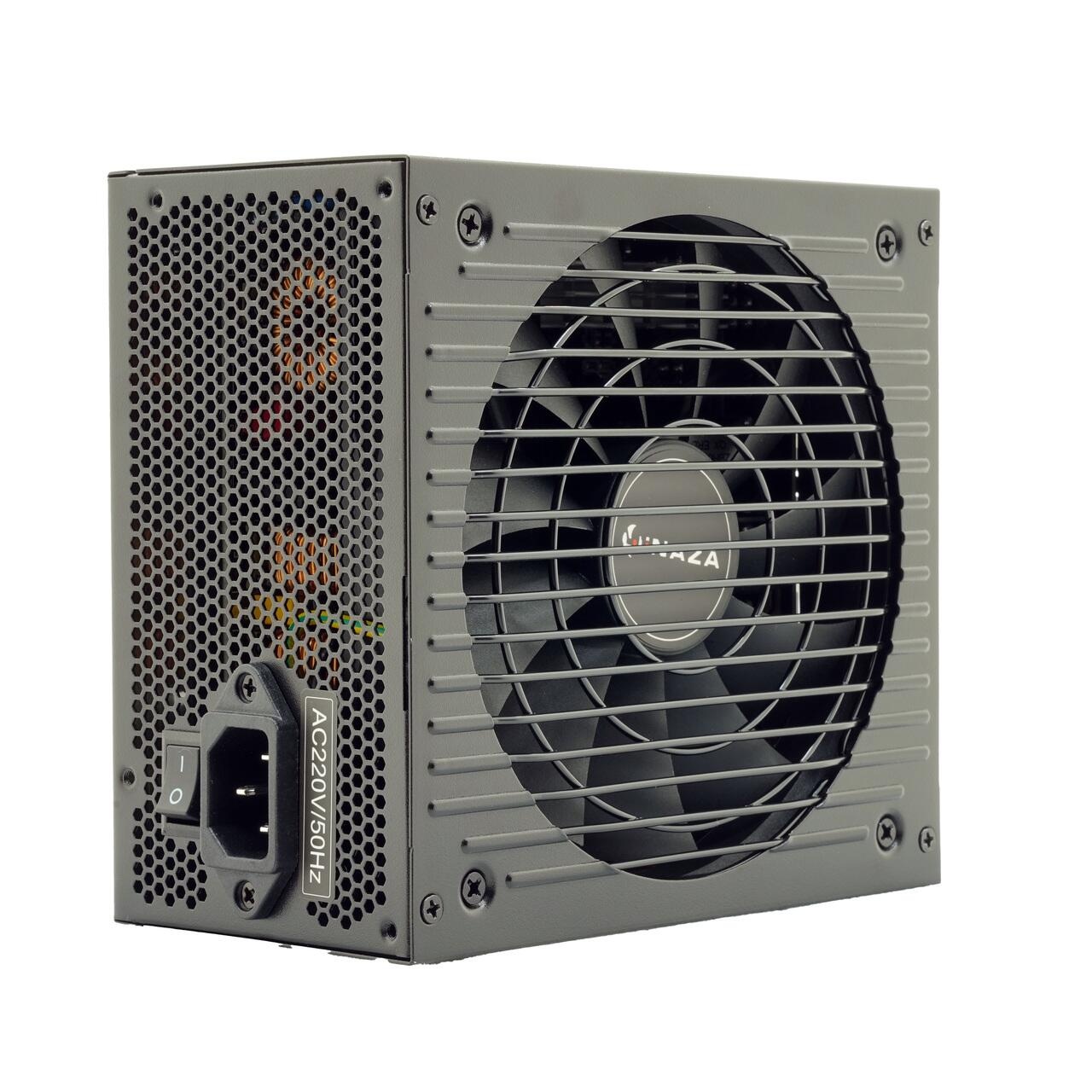 Sursa full modulara Inaza Odyssey 2 750W ATX 3.1 PCIE 5.1 80Plus Bronze, certificata 80 PLUS Bronze, single rail (62A), ventilator silentios de 120mm cu control termic automat, 1x PCIE 16pin, 2x PCIE 6+2pin, 4x SATA, 2x Molex, 1x 4+4pin EPS12V (680mm), 1x 24pin (580mm), SPD/OPP/UVP/OVP/SCP, Active PFC, dimensiuni: 150x140x85mm