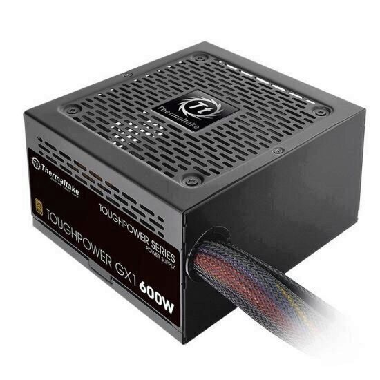Sursa Thermaltake Toughpower GX1 600W, certificata 80 PLUS GOLD, eficienta pana la 90%, single rail (49A), ventilator silentios de 120mm cu control termic automat,1x 24pin (600mm), 2x 6+2pin PCIE (500mm+150mm), 8x SATA, 4x Molex, 1x Floppy, 1x 4+4pin EPS12V (650mm), OVP/OPP/SCP, Active PFC, dimensiuni (H x W x D): 86x150x140mm